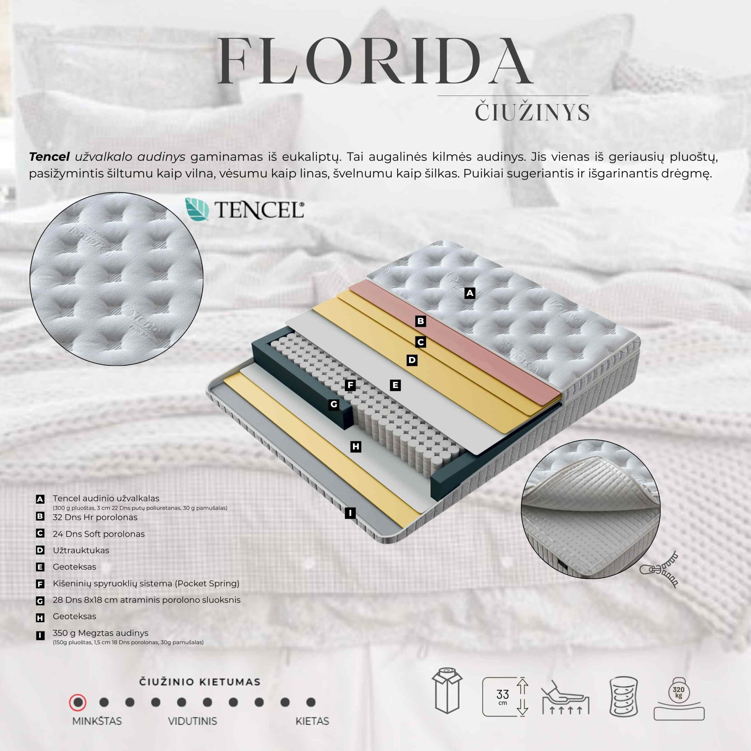Tencel užvalkalo audinys gaminamas iš eukaliptų. Tai augalinės kilmės audinys. Jis vienas iš geriausių pluoštų, pasižymintis šiltumu kaip vilna, vėsumu kaip linas, švelnumu kaip šilkas. Puikiai sugeriantis ir išgarinantis drėgmę. Antčiužinis nuvelkamas.