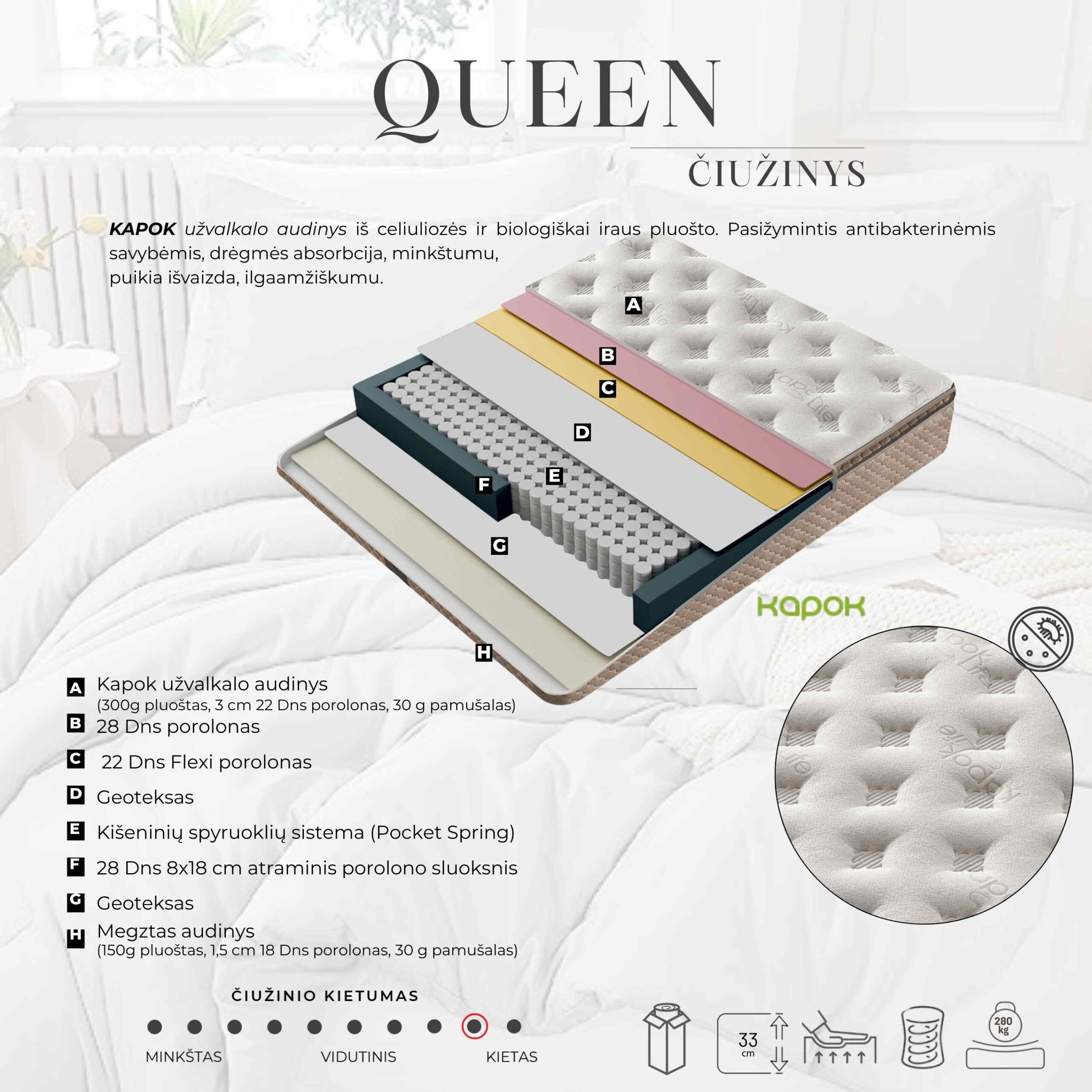 Teisingas stuburo palaikymas. Kišeninių spyruoklių technologija puikiai prisitaiko prie įvairių kūno tipų ir užtikrina tinkamą stuburo atramą, palaikydama kūno išlinkimus dėl atskirai individualių kišeninių spyruoklių sistemos.