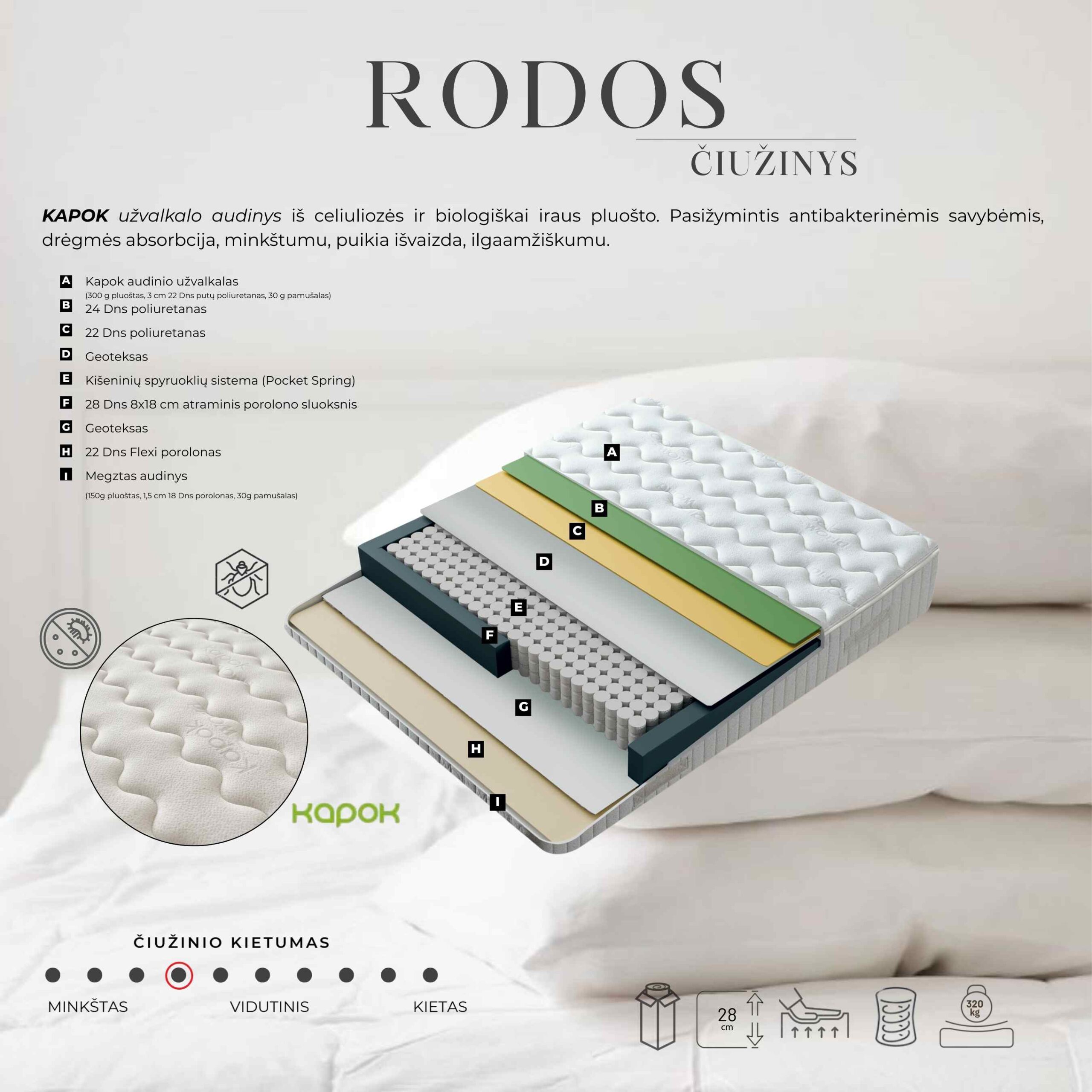 Teisingas stuburo palaikymas. Kišeninių spyruoklių technologija puikiai prisitaiko prie įvairių kūno tipų ir užtikrina tinkamą stuburo atramą, palaikydama kūno išlinkimus dėl atskirai individualių kišeninių spyruoklių sistemos.