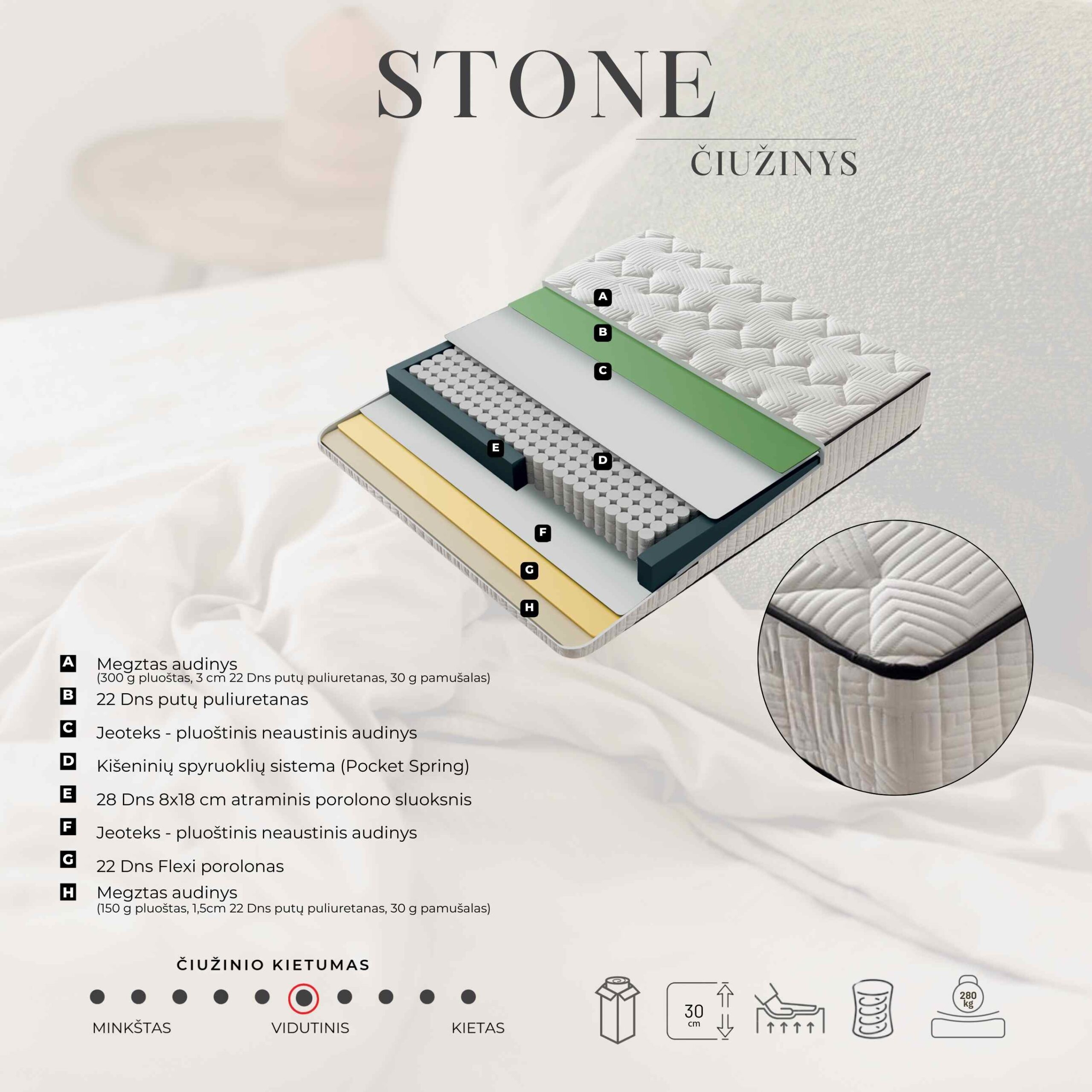 Teisingas stuburo palaikymas. Kišeninių spyruoklių technologija puikiai prisitaiko prie įvairių kūno tipų ir užtikrina tinkamą stuburo atramą, palaikydama kūno išlinkimus dėl atskirai individualių kišeninių spyruoklių sistemos.