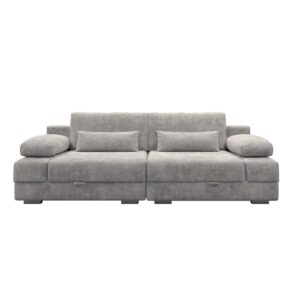 Aptakių formų kompaktiška sofa su miegojimo funkcija.